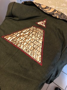This would get me very close to the original, and closer than a tiger stripe pattern. Once these pieces were done, I fired up Peggy (my trusty 1960’s vintage machine) and sewed the pieces on. That got me to here: