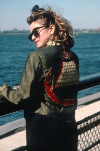 Haven’t seen it? As of Sept 2019, it was on Amazon Prime. Recommended! Super fun, circa 1985. And the jacket is both amazing, and a key plot point!  The costumers made at least two of these, (see photo below) one for Madonna and one for Rosanna Arquette. The one worn by Madonna in the film – and in her video for “Get Into the Groove,” sold at auction in 2016 for $70,000. (!)